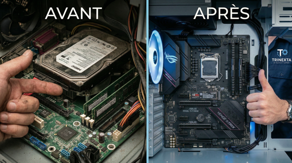 Une machine qui semble lente ne doit pas toujours être jetée. Parfois, une simple reconfiguration logicielle, un nettoyage ou le remplacement d’un composant défaillant suffit. L’audit de Trinexta vous donne une cartographie précise de votre parc informatique, classant vos équipements par niveau de risque et de performance. C’est la base de tout conseil informatique professionnel.