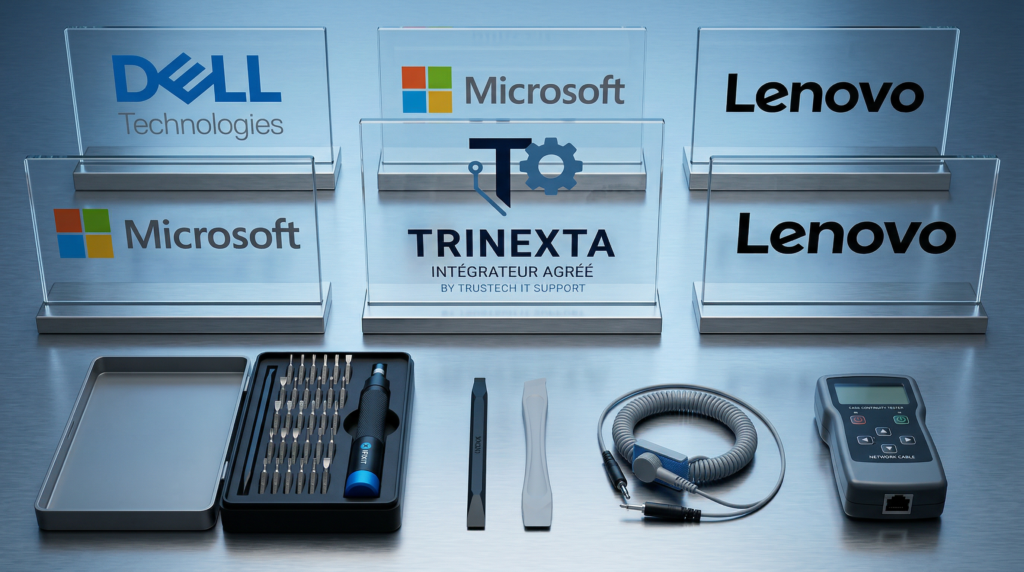 Le conseil informatique ne s’arrête pas au choix du matériel. Il s’agit de choisir les bonnes alliances. Chez Trinexta, nous sélectionnons uniquement des partenaires reconnus. Ils sont choisis pour leur fiabilité, leur robustesse et la qualité de leur support. Ainsi, même en cas de panne lourde, vous êtes couverts. Que vous soyez à Paris, dans le pôle technologique de Paris-Saclay en Essonne, ou dans le quartier d’affaires de La Défense, la réactivité du SAV de ces grands constructeurs est un atout majeur pour nos PME clientes.